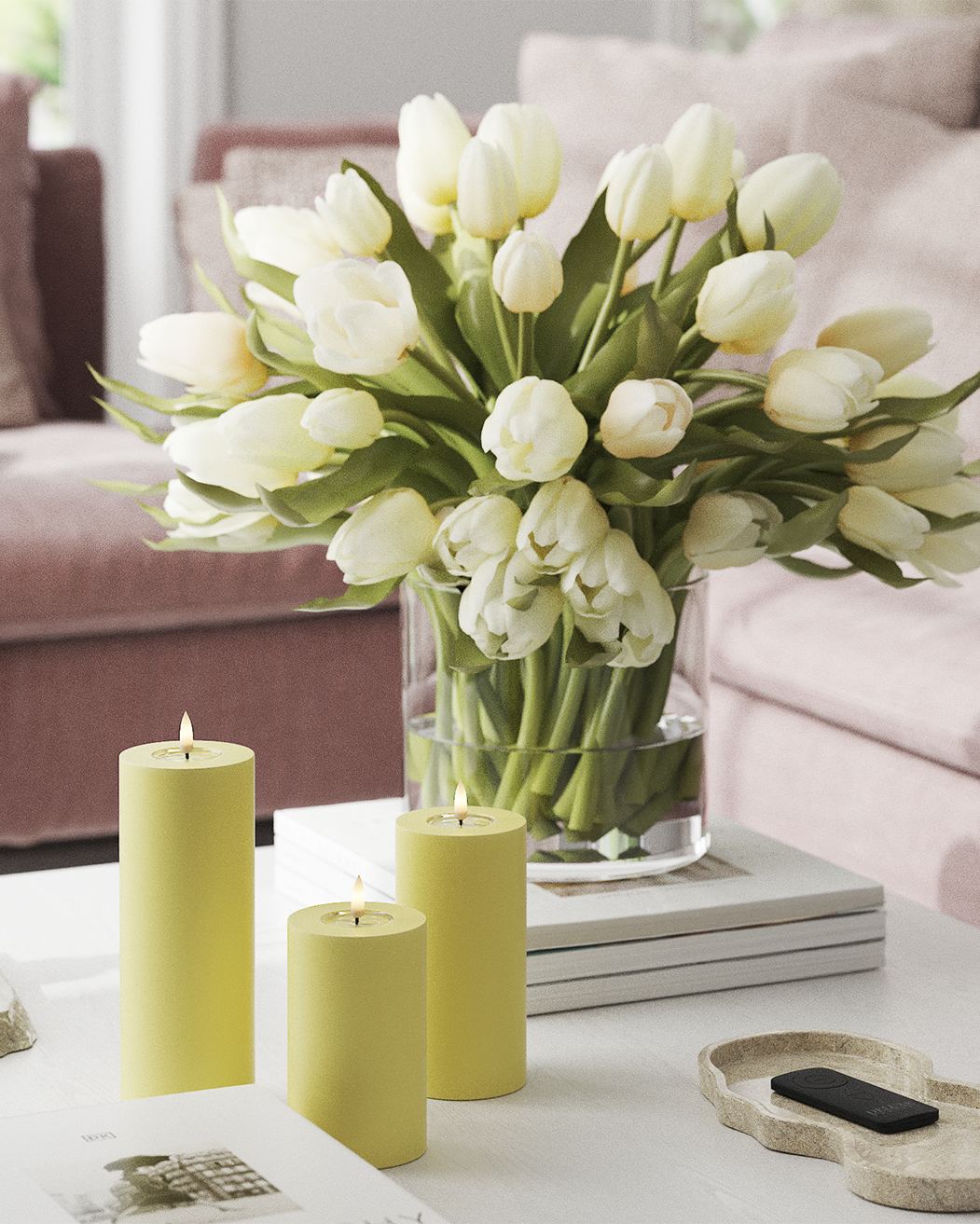 De lysegule bloklys passer smukt ind i både moderne og klassisk indretning. Brug dem på spisebordet, i vindueskarmen, på en bakke eller som en del af en sæsonopstilling, hvor du ønsker et varmt og indbydende udtryk.