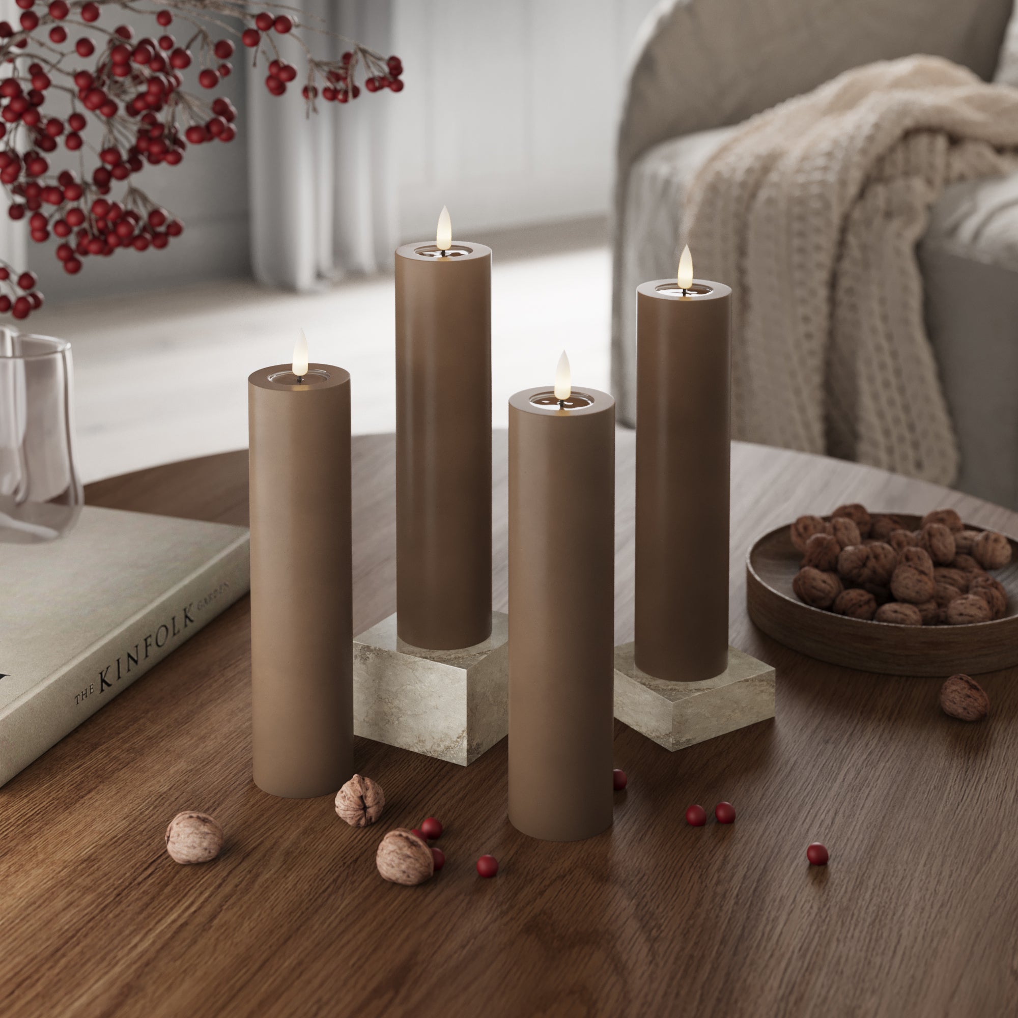 LED-Blockkerzen Ø 5 x 20 cm Karamell – 4 Stück