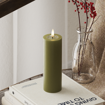 LED-Blockkerzen Ø 5 x 15 cm Olivgrün