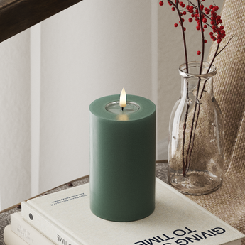 Produktet kan findes i: API dell'impiegato, Candela a pilastro - Tutto, Estate, GUIDATO Candela a pilastro, GUIDATO Candela a pilastro Ø 7,5 x 12,5 cm, Luce indoor a LED, Stagioni, Tutto, Verde giada